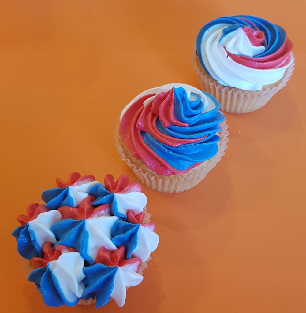 cupcakes Regenboog cupcake Fijne Koningsdag! Chocolade cupcake met vanille en aardbei Chocolade karamel cupcake